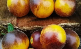 | Цвет зрелого плода | Желто-фиолетовый | Уникальная декоративная окраска. Фиолетовый румянец сильнее проявляется на солнце. |