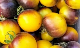 В свежем виде желто-фиолетовые томаты отлично дополняют салаты, служат ярким элементом для нарезки и украшения различных блюд. Их необычный окрас — результат сложного сочетания пигментов. Желтый цвет дает бета-каротин, а фиолетовые «плечики» и разводы — антоцианы.