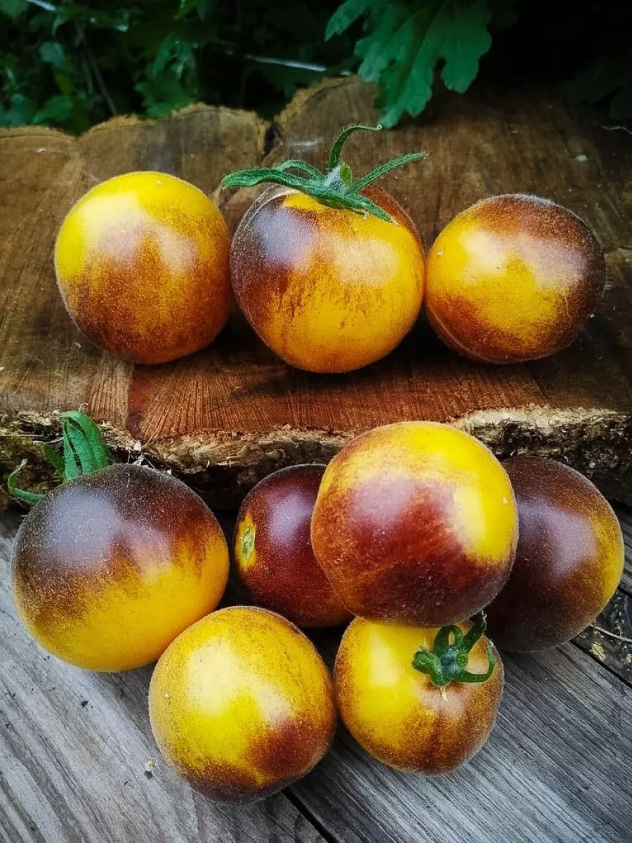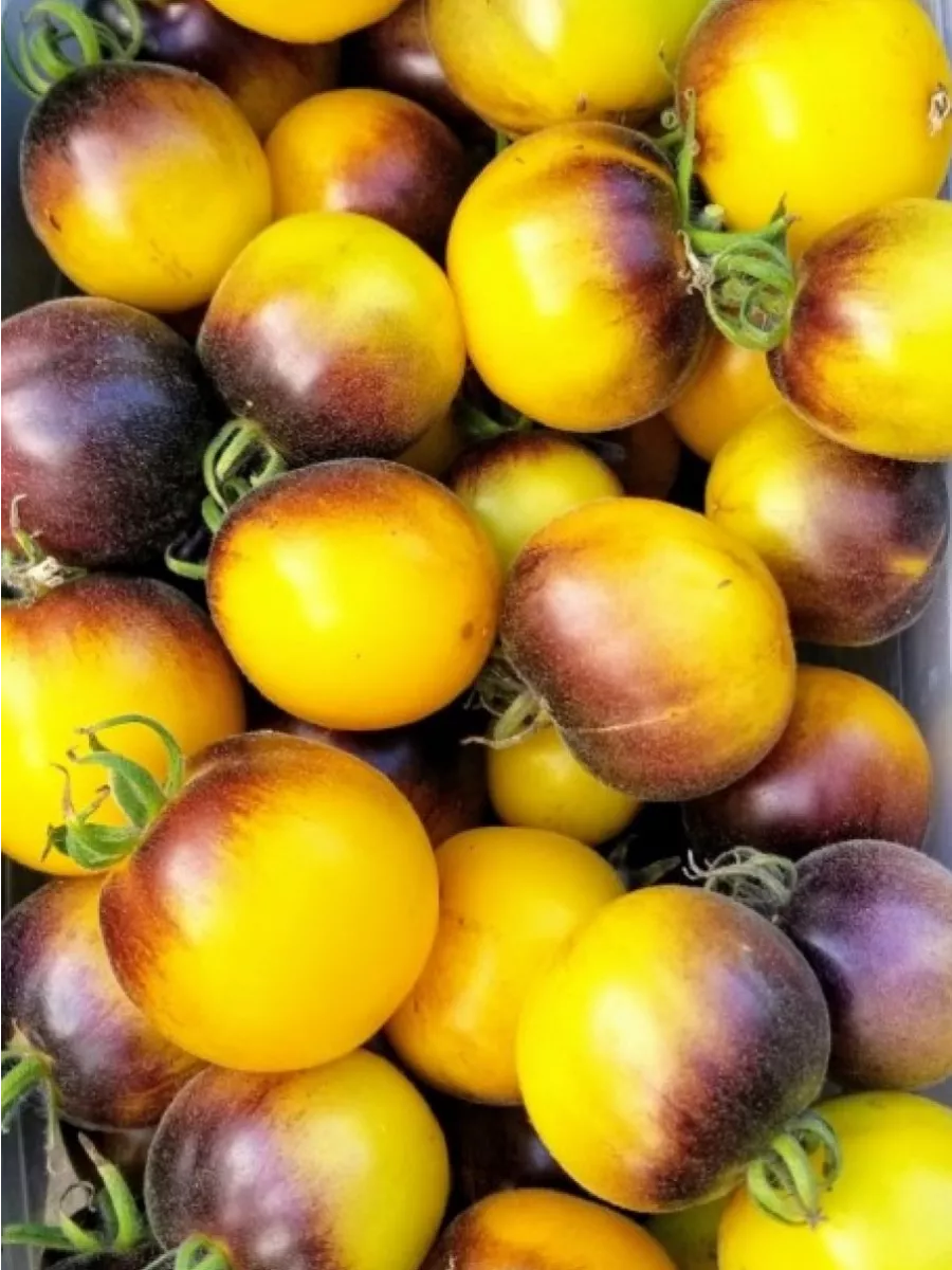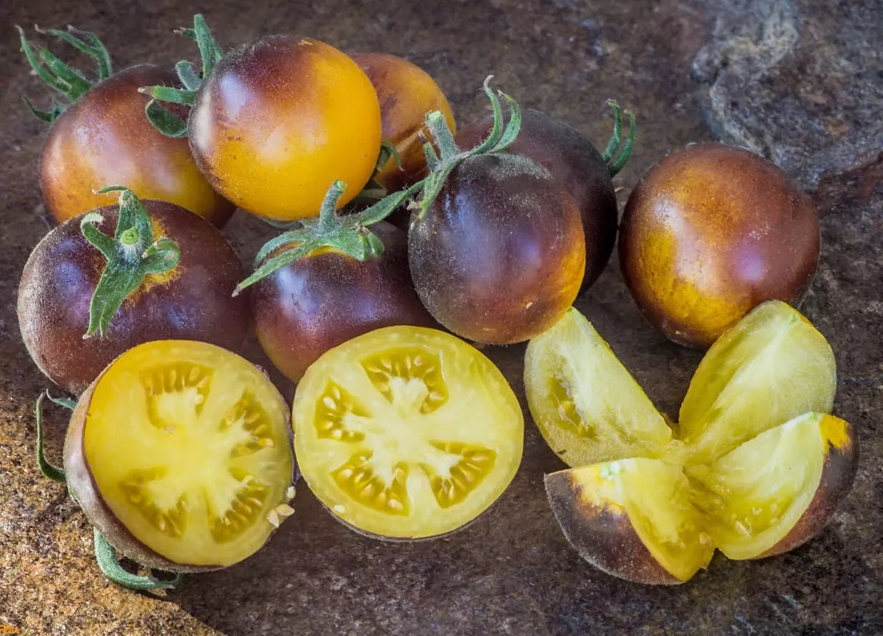 В свежем виде желто-фиолетовые томаты отлично дополняют салаты, служат ярким элементом для нарезки и украшения различных блюд. Их необычный окрас — результат сложного сочетания пигментов. Желтый цвет дает бета-каротин, а фиолетовые «плечики» и разводы — антоцианы.