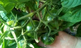 Плоды завязываются и созревают в простых кистях. Такое расположение, где плодоножки отходят непосредственно от основного стебля кисти, делает урожай очень удобным для сбора. Растение выглядит нарядно и продуктивно, когда на нем одновременно висят кисти с плодами разной степени спелости.