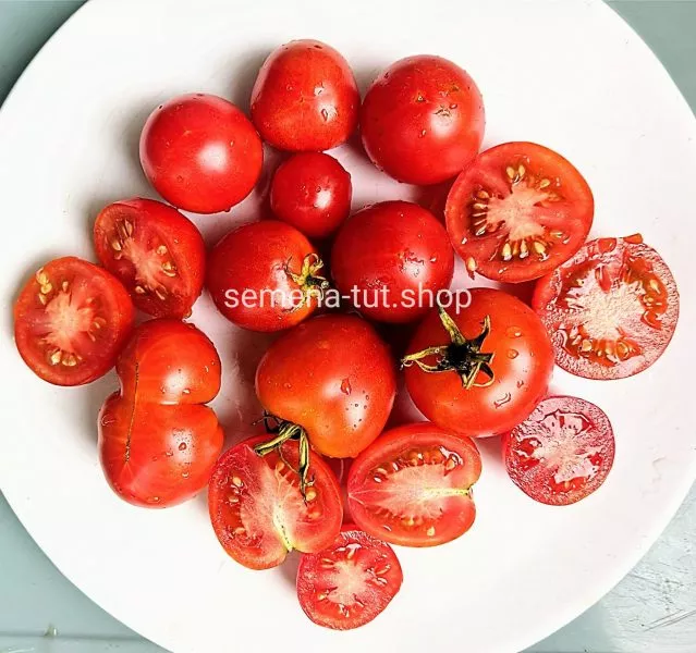 Окрас в биологической спелости — равномерный, насыщенно-красный, без зеленого или желтого пятна у плодоножки. Эта особенность, наряду с указанной устойчивостью к солнечным ожогам, обеспечивает отличный товарный вид всего урожая. Плотная, но не грубая кожица эффективно защищает плоды от растрескивания, что особенно ценно при неравномерном поливе или в дождливые периоды.
