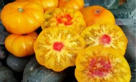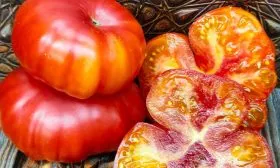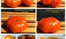 Плоды «Мордовской красавицы» невозможно спутать с другими. Их главная отличительная черта – выраженная ребристость, особенно заметная в области плодоножки, придающая томату характерную плоскоокруглую, слегка приплюснутую форму. Эта ребристость является сортовым признаком, а не дефектом.