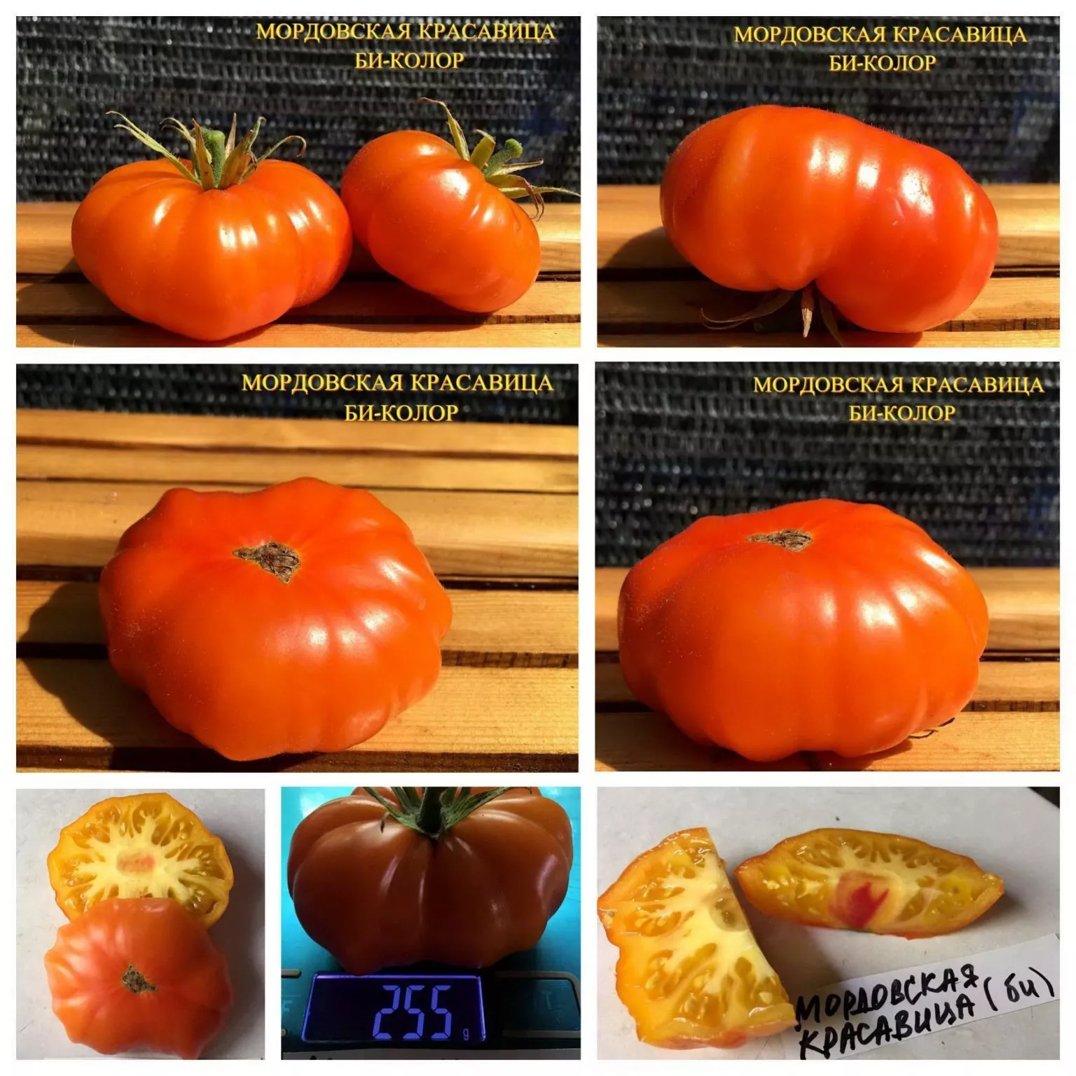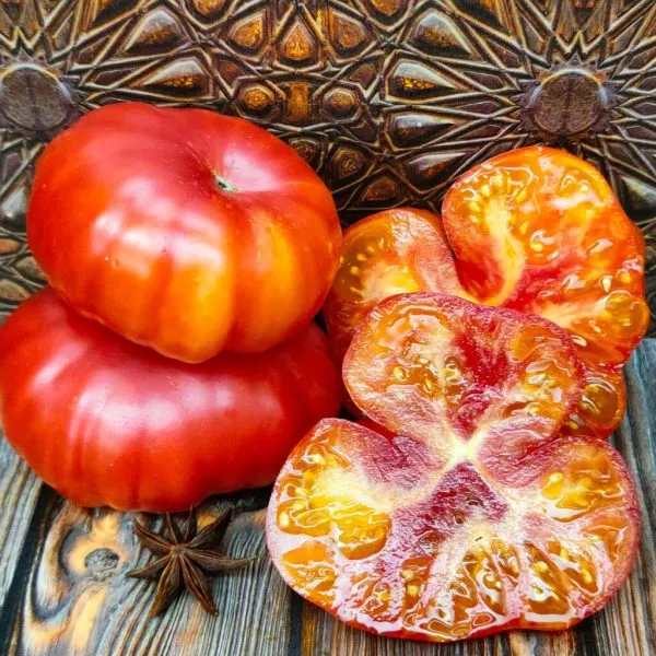 Плоды «Мордовской красавицы» невозможно спутать с другими. Их главная отличительная черта – выраженная ребристость, особенно заметная в области плодоножки, придающая томату характерную плоскоокруглую, слегка приплюснутую форму. Эта ребристость является сортовым признаком, а не дефектом.
