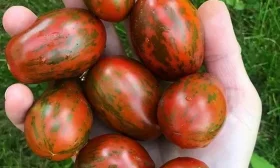 Сорт был выведен российскими селекционерами и быстро завоевал популярность среди любителей необычных томатов. Его главная «фишка» — удивительная, запоминающаяся окраска: темно-красные плоды с четко выраженными зелеными штрихами. Морские колокольчики созданы для тех, кто ценит в томатах не только урожайность и вкус, но и эстетическое удовольствие.