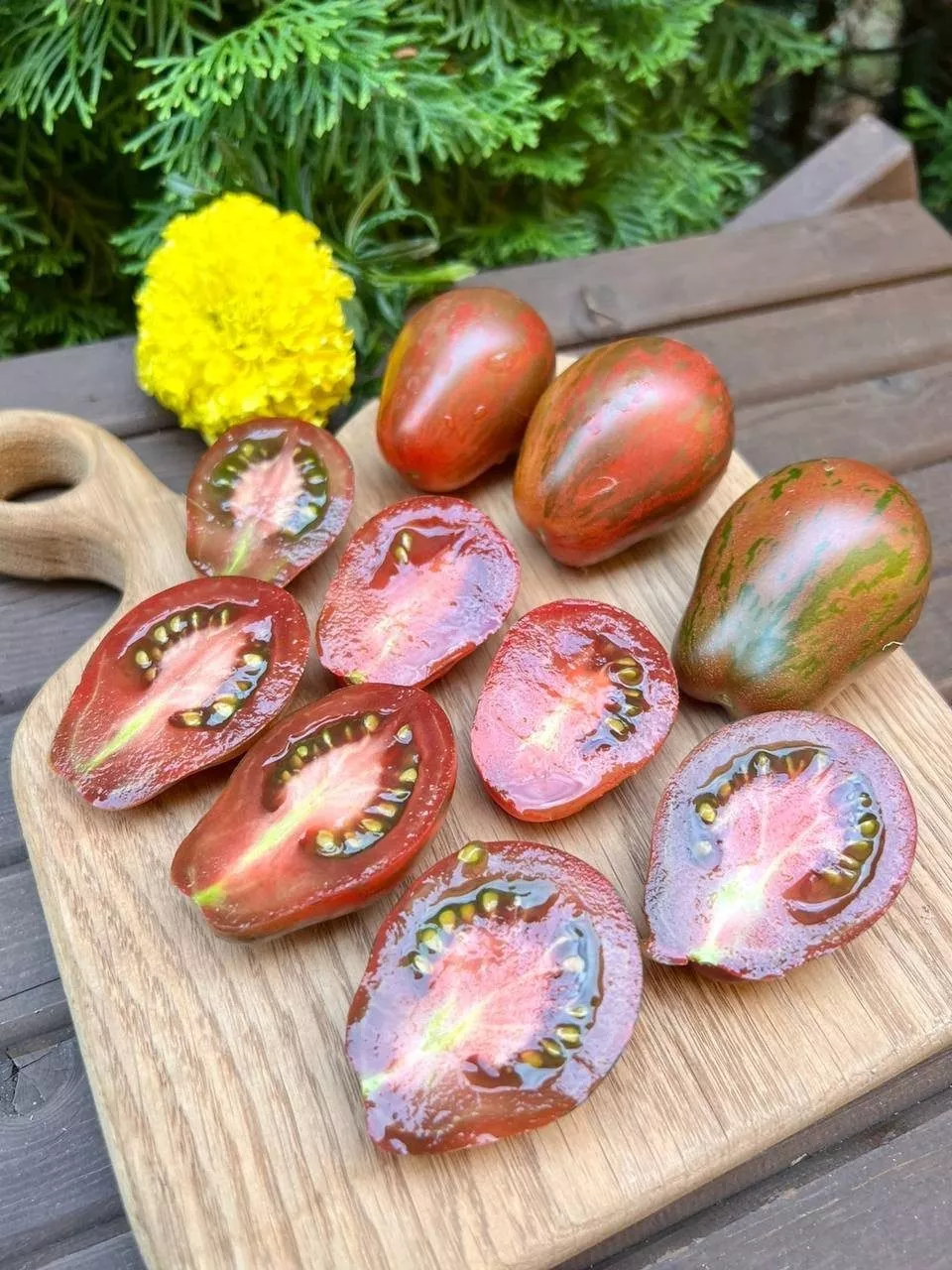 Вкус оценивается как богатый и гармоничный, с явно выраженной сладостью, которая преобладает над легкой, характерной для томатов кислинкой. Такое сочетание плотной текстуры и насыщенного вкуса делает плоды универсальными: они отлично подходят для свежих нарезок, вяления, а благодаря высокому содержанию сухих веществ – для приготовления густых соусов, паст и кетчупа, где не требуется длительное уваривание.