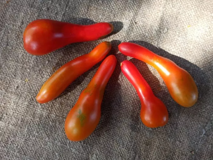 Плоды сорта Морской конек обладают классическим томатным вкусом, который максимально раскрывается при полном созревании на кусте. Снимать их рекомендуется в стадии биологической спелости, когда грушевидная форма с тонкой «шейкой» равномерно окрашивается в ярко-красный цвет.