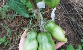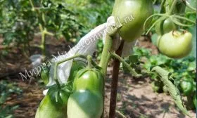 - Подвязка к опоре обязательна, несмотря на невысокий рост. Стебель, особенно в период налива плодов, может не выдержать нагрузки и упасть на землю. Достаточно подвязать главный стебель к прочному колышку в 2-3 местах по мере роста.