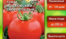 Сорт томата Московский скороспелый является классикой отечественной селекции, выведенной в 60-х годах XX века. Его созданием занимались селекционеры Всесоюзного научно-исследовательского института селекции и семеноводства овощных культур (ВНИИССОК).