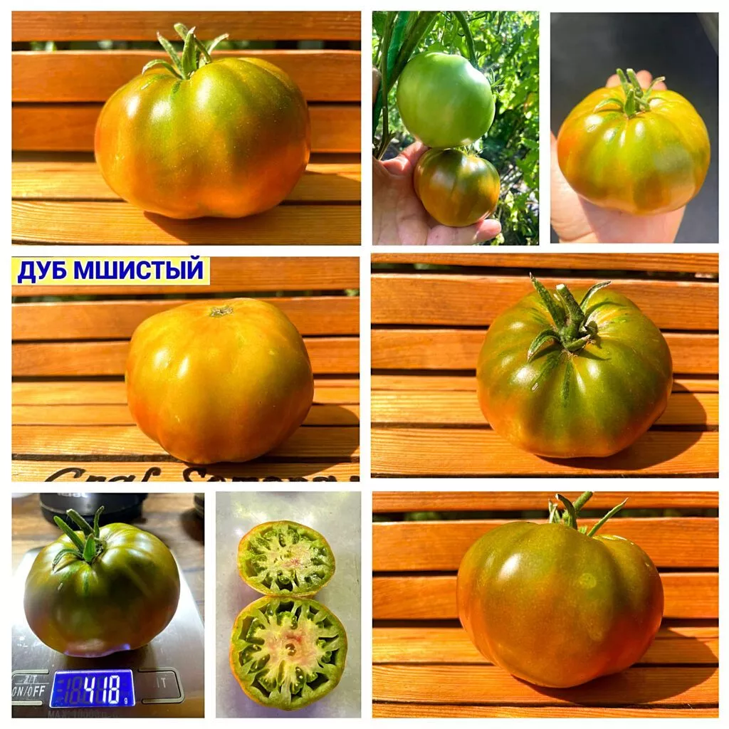 Главная отличительная черта этого сорта — уникальная листва, полностью оправдывающая его название. Листовые пластины имеют сильную гофрированность, густое опушение и глубоко изрезанный, резной край. Эта характерная текстура визуально напоминает лист дуба, покрытый мхом, что придает кусту высокую декоративность и позволяет безошибочно идентифицировать сорт среди других томатов.