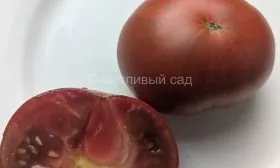 Плоды плоскоокруглой формы массой 180-230 граммов обладают уникальным красно-коричневым цветом, который указывает на наличие антоцианов. Эти природные пигменты не только придают необычную окраску, но и могут повышать антиоксидантные свойства томата.