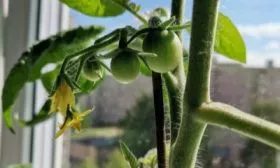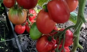 Несмотря на крепкий стебель, подвязка к опоре является обязательным условием. Работу начинают через 7-10 дней после высадки рассады, когда растения адаптируются. Под весом многочисленных и тяжелых плодов (до 160 г) кисти будут склоняться к земле, что повышает риск заболеваний.