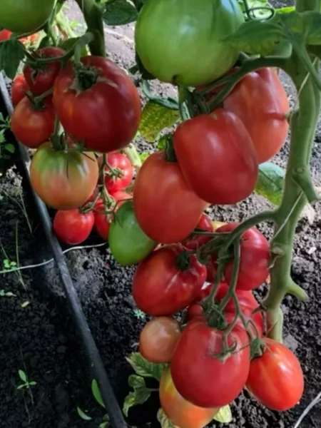 Несмотря на крепкий стебель, подвязка к опоре является обязательным условием. Работу начинают через 7-10 дней после высадки рассады, когда растения адаптируются. Под весом многочисленных и тяжелых плодов (до 160 г) кисти будут склоняться к земле, что повышает риск заболеваний.