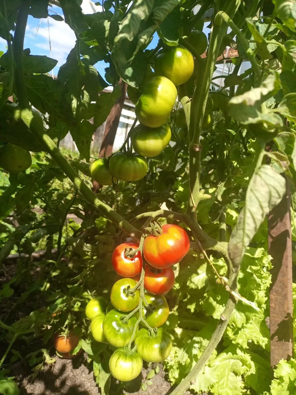 Листва плотная, темно-зеленого цвета, с характерной для томатов рассеченностью. Ограниченный рост до 60-80 см избавляет от необходимости устанавливать высокие шпалеры. Однако, учитывая потенциальную урожайность, подвязка к невысоким кольям или шпалере все же рекомендуется — это предотвратит контакт кистей с землей и сохранит плоды чистыми.