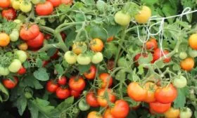 Однако для получения более крупных плодов рекомендуется все же удалить один-два самых первых пасынка в нижней части, оставив 2-3 основных стебля. Подвязка к опоре желательна в период массового налива плодов, чтобы тяжелые кисти не ложились на землю и не подгнивали.