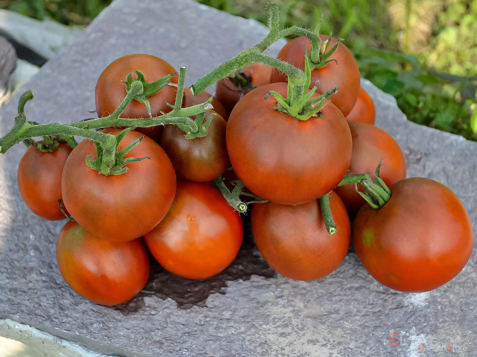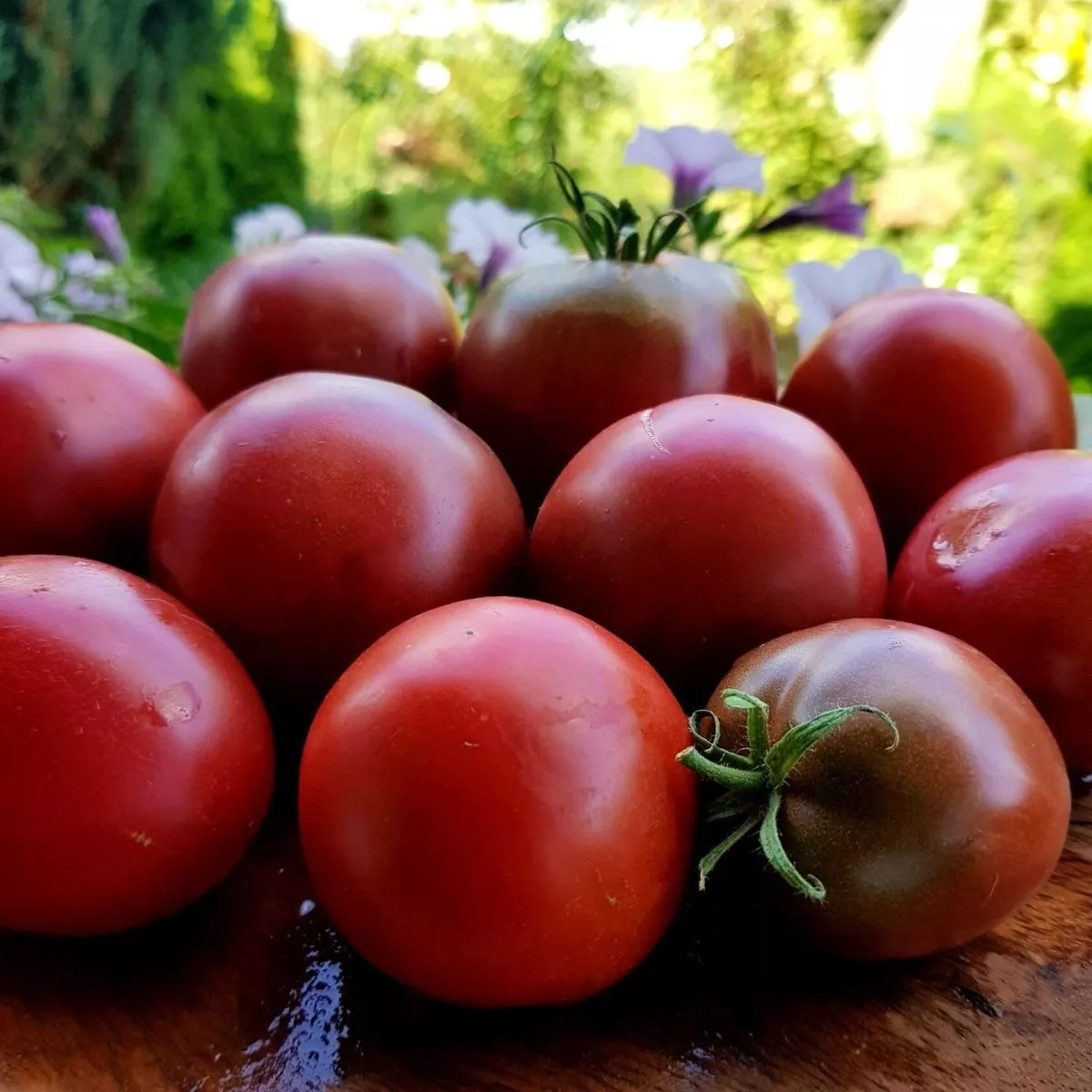 Плоды достигают технической спелости через 110-120 дней после полных всходов. Ключевая особенность, влияющая на качество урожая, — необходимость дожидаться полного окрашивания томатов прямо на кусте. Только так в них формируется характерный для темноплодных сортов многогранный вкус с оптимальным балансом сахаров и кислот, а также накапливается максимальное количество полезных антоцианов.