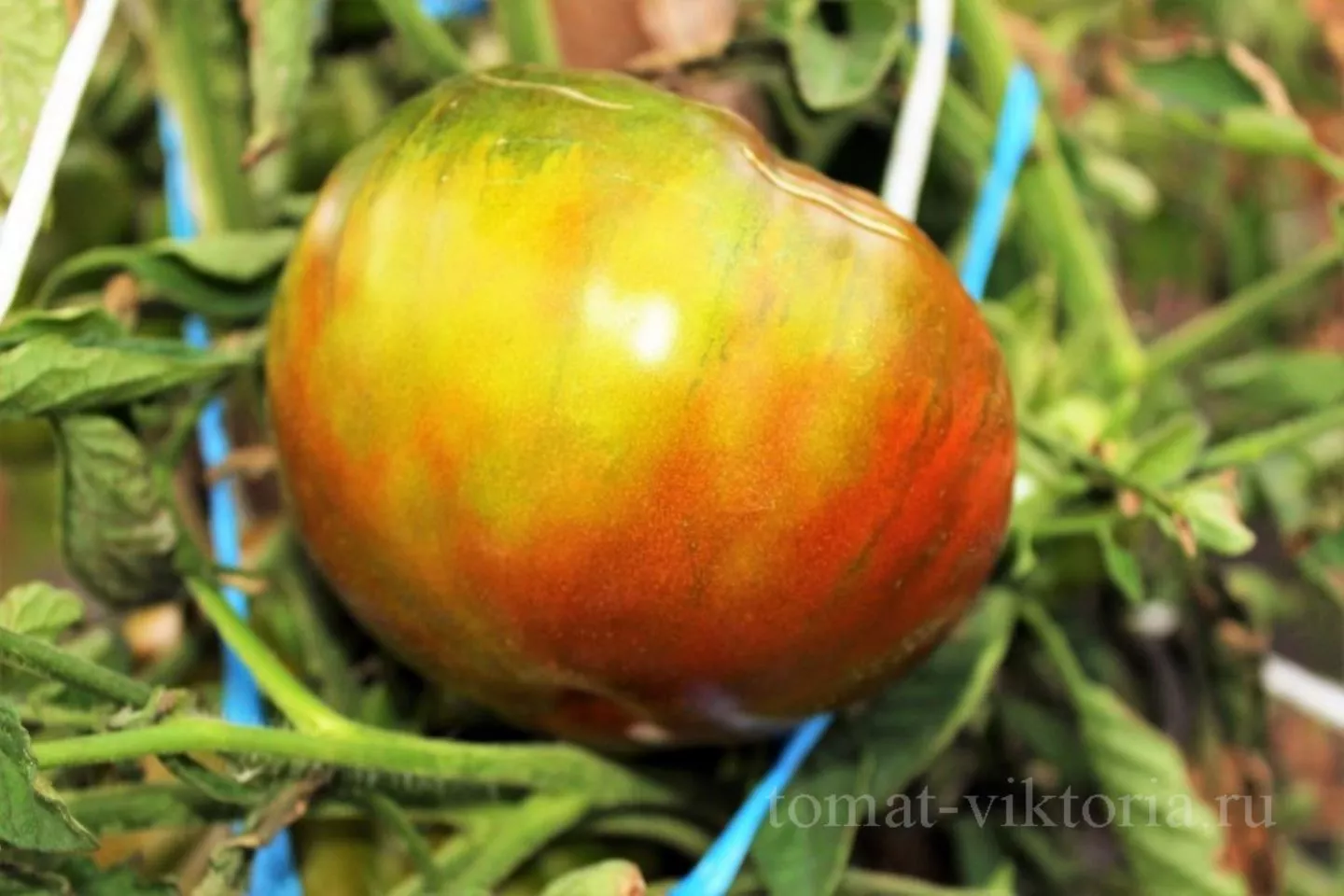 Главная гордость этого сорта — его плоды, ради которых многие садоводы готовы мириться с необходимостью формировки и подвязки. Их плоскоокруглая форма характерна для многих биф-томатов, но уникальность заключается в сложной и изменчивой окраске.