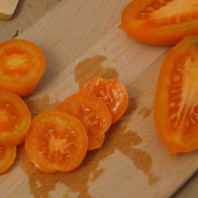 Полностью созревшие томаты приобретают яркий, солнечно-желтый цвет. Плотная, но не жесткая кожица надежно защищает мякоть от растрескивания как на кусте, так и в процессе термической обработки при консервировании, что напрямую соответствует заявленному назначению сорта.