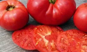 Красно-розовый цвет зрелого плода указывает на высокое содержание ликопина – мощного антиоксиданта. Мясистая мякоть также является источником бета-каротина, витаминов группы В и С. Плотная текстура и сбалансированный вкус способствуют хорошей усвояемости.