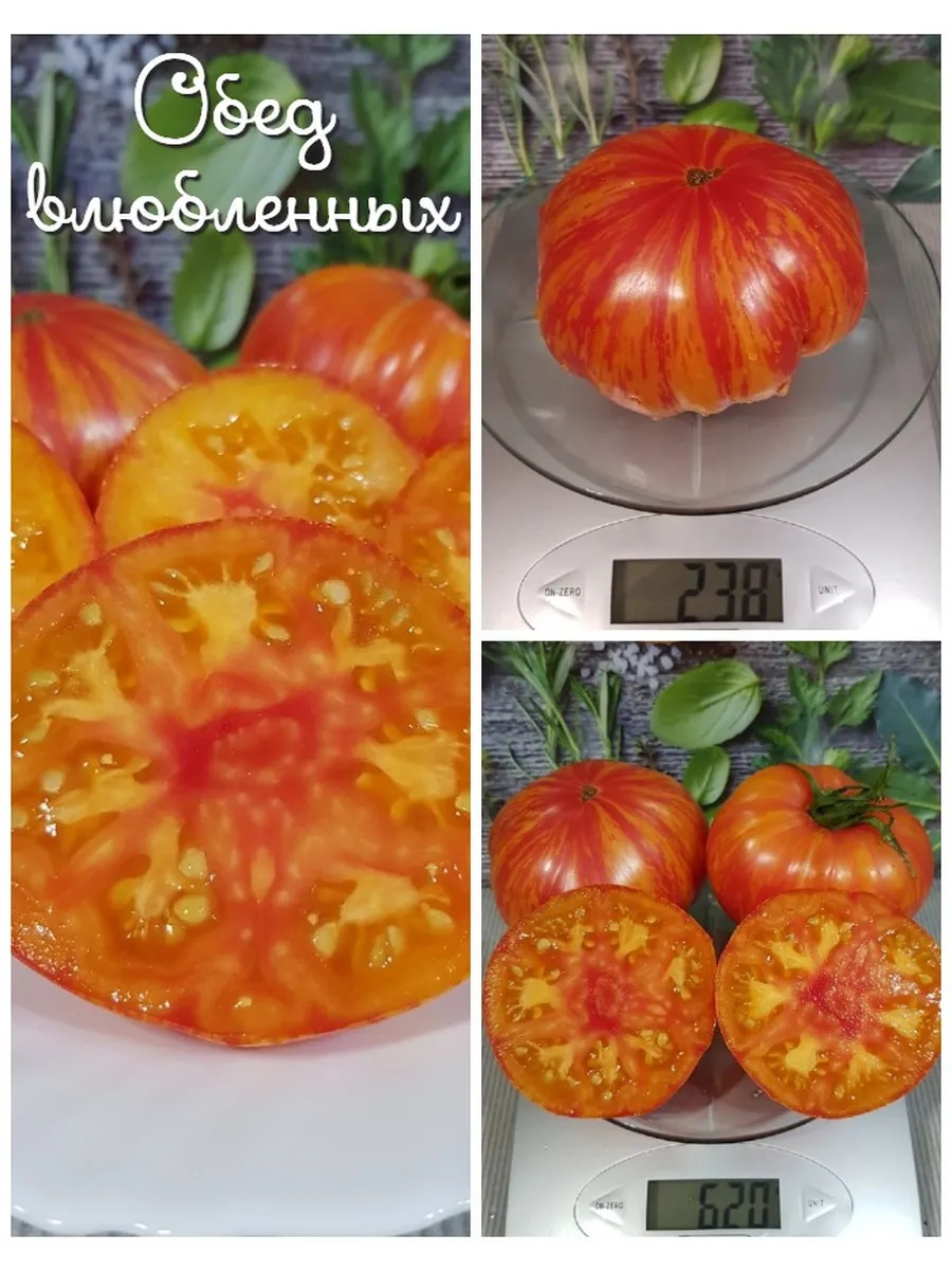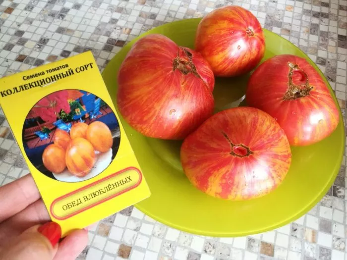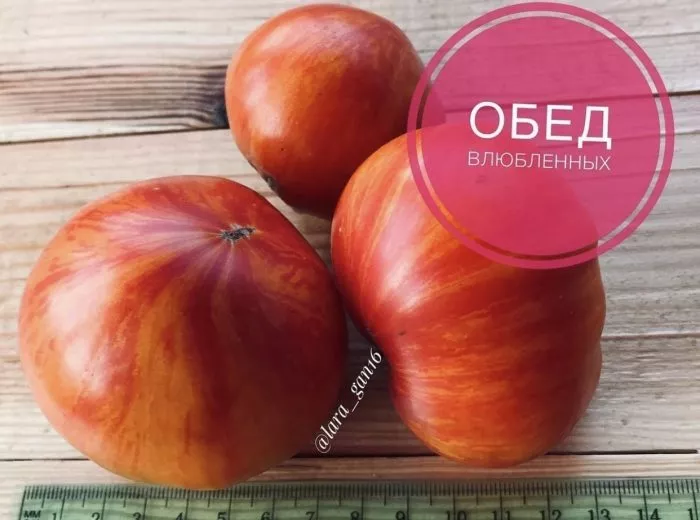 Этот томат с романтичным названием «Обед влюбленных» представляет собой результат селекционной работы, направленной на создание сортов с уникальной декоративностью и высокими вкусовыми качествами. Будучи именно сортом, а не гибридом, он позволяет садоводам самостоятельно заготавливать семенной материал из года в год, сохраняя все его отличительные признаки.