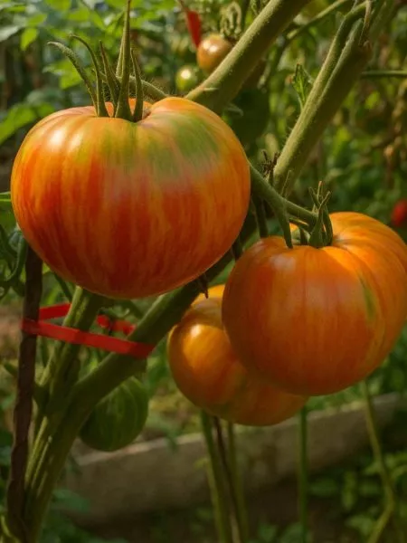 Представляем томат «Обед влюбленных» — среднеспелый индетерминантный сорт для настоящих ценителей. Его главное украшение — необычные плоскоокруглые плоды нежно-оранжевого цвета с золотой росписью и розовыми полосками. Мощные кусты высотой до двух метров дарят обильный урожай сладких, с пряным ароматом томатов, идеальных для сока, пасты и свежих салатов. Давайте узнаем, как вырастить эту красоту в своём огороде.