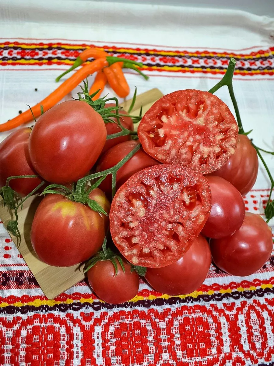 Вкус плодов классический, томатный, с хорошо ощутимым балансом сладости и кислоты. Эта яркая кислинка, характерная для многих среднеспелых сортов, делает вкус насыщенным и не пресным. Мякоть плотная, не водянистая, что позволяет красиво нарезать плоды для салатов — ломтики не расползаются и сохраняют форму.