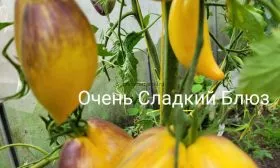 Вкус полностью соответствует названию «Очень сладкий блюз». Мякоть обладает высокой сахаристостью при практически полном отсутствии кислинки, что характерно для многих желтоплодных сортов. Консистенция плотная, мясистая (биф-тип), с небольшим количеством семян и высоким содержанием сухих веществ.
