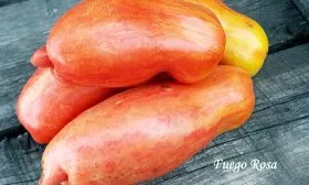 Среди многообразия томатов сорт «Огненная роза» выделяется не только названием. Это индетерминантный среднеспелый сорт с удивительными плодами: розовыми, с золотистыми полосками и изящной удлинённой формой. Его универсальность, высокая урожайность и яркий вкус делают его желанным гощем как в теплице, так и в открытом грунте. Давайте узнаем о нём больше.