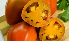 Мясистая, почти без семян и сока мякоть отлично держит форму при нарезке, что ценно для приготовления бутербродов и канапе. Крупный размер плодов, достигающий 200-400 граммов и более, делает их также прекрасной основой для фарширования.
