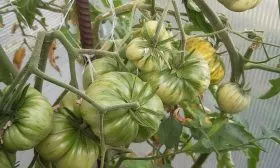 Плодоношение происходит на простых кистях. В первой кисти, как правило, завязывается 3-4 помидора, в последующих их количество может увеличиваться до 4-6. Учитывая совокупный вес такой кисти, которая может превышать 2 кг, подвязывать нужно не только основной стебель, но и сами тяжелые грозди, чтобы предотвратить отламывание.