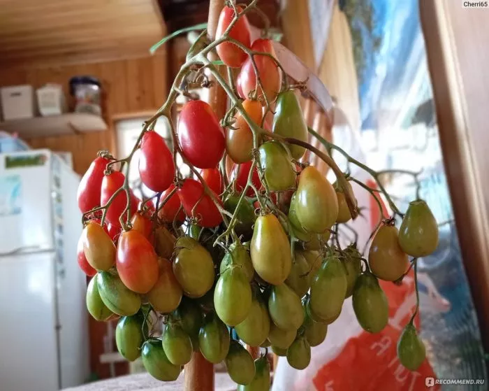 Несмотря на детерминантный тип роста, растение достигает значительной высоты в 90-110 см. Без надежной опоры стебель будет заваливаться под весом наливающихся кистей.
