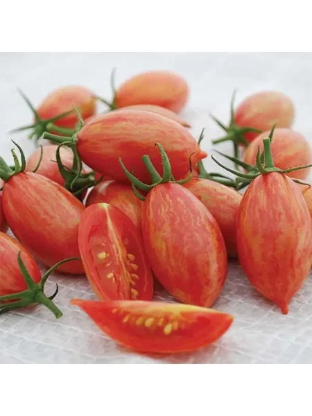 Окрас зрелого томата — красно-оранжевый. Это не просто смесь красного и желтого, а именно теплый, насыщенный промежуточный оттенок, который сохраняет свою яркость и после термической обработки. В стадии технической спелости плоды имеют светло-зеленый цвет без темного пятна у плодоножки.