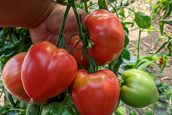 - У помидоров сердцевидная форма, их масса варьируется от 300 до 350 г.