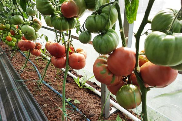 В теплице высота растения может достигать 1,2 м, что выше, чем на открытых грядках. На стволе может сформироваться до 15 кистей, и плоды созревают одновременно на нескольких ветках, имея одинаковые размеры.