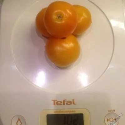 Небольшие округлые плоды массой 40-50 граммов имеют плотную кожицу и мякоть, что делает их практически идеальными для цельноплодного маринования и засолки — они не растрескиваются при термической обработке. Желтый цвет обусловлен высоким содержанием каротиноидов и придает консервации привлекательный вид.