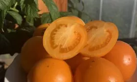 Окраска в фазе полной биологической спелости — равномерный желтый цвет, который на солнце часто приобретает яркие, солнечно-оранжевые оттенки. Средняя масса плода соответствует заявленной — 50-55 граммов, что обеспечивает их выровненность в кисти. Однако агротехнические приемы напрямую влияют на размер.