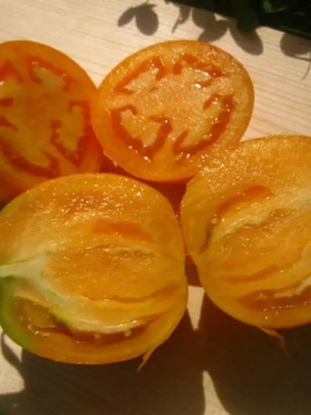 Среди множества сортов с оранжевыми плодами этот выделяется специфическим сочетанием характеристик. Многие «оранжевые» томаты имеют округлую или сердцевидную форму и часто относятся к биф-томатам (особо мясистым).