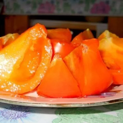 В состоянии биологической (полной) спелости кожица приобретает насыщенный оранжевый цвет. Мякоть обладает высокой плотностью и на изломе выглядит сахаристой, что свидетельствует о высоком содержании сухих веществ. Семенных камер немного, а сами семена занимают незначительный объем.