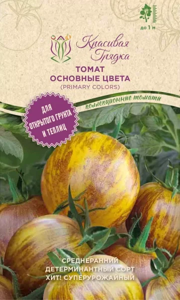 Среди многообразия томатов сорт «Основные цвета (Примари Колор)» выделяется своей необычной внешностью и универсальностью. Этот среднеспелый полудетерминантный томат с нежно-фруктовым вкусом порадует высокой урожайностью как в теплице, так и в открытом грунте. Его главная визитная карточка — округлые плоды массой около 100 граммов, окрашенные в солнечный желтый с эффектными синевато-коричневыми полосами.