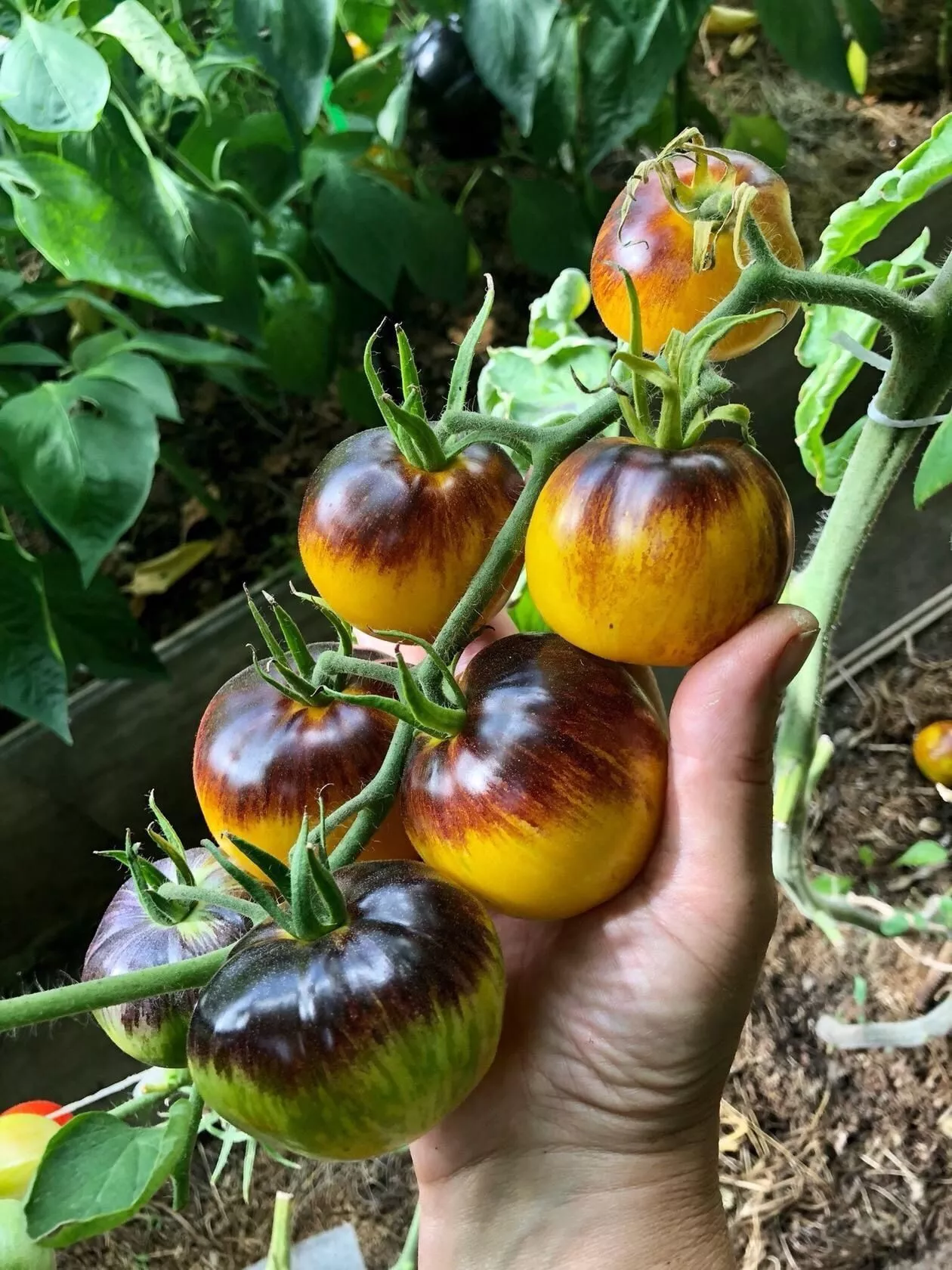 Снятые бурые плоды успешно дозревают в теплом (+18…+22°C), темном помещении. Однако важно помнить, что при дозаривании в помещении контрастность полос может быть менее выраженной, чем у томатов, созревших на солнце. Истинный нежно-фруктовый вкус и аромат максимально раскрываются именно у плодов, достигших полной спелости на кусте.