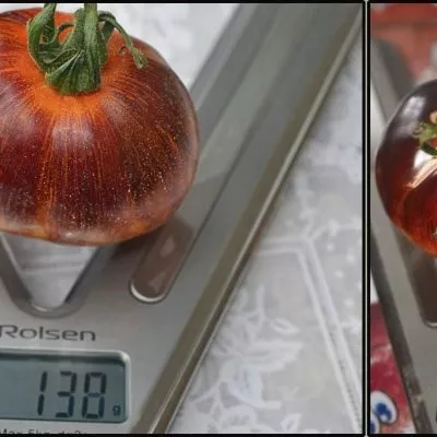 Плоды имеют характерную плоскоокруглую форму с ярко выраженными, «порционными» ребрами. Такая ребристость – отличительная черта многих биф-томатов, придающая им декоративный вид и удобство для нарезки. Средняя масса плода соответствует заявленным 100-150 граммам.