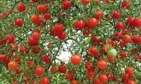 | Масса плода | 5-7 г | Характерный размер для коктейльных (черри) томатов, плоды собраны в длинные кисти. |
