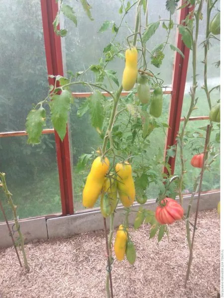 Плоды можно и нужно снимать в разные фазы спелости, в зависимости от ваших целей. В стадии технической (или бланжевой) спелости томаты достигают заявленного размера (около 90 граммов), их кожица из зеленой переходит в более светлый, желтовато-оливковый оттенок, а внутри начинается процесс накопления каротиноидов, ответственных за оранжевый цвет.