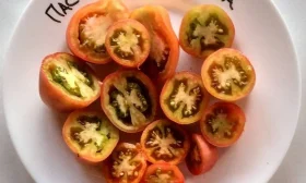 Плотная, мясистая мякоть и прочная кожица открывают широкие возможности для переработки. В цельноплодном консервировании эти томаты сохраняют форму, не растрескиваются в рассоле и приобретают интересный, глубокий оттенок. Их размер как раз удобен для укладки в стандартные банки.