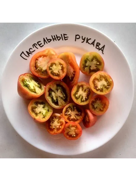 Пастельные рукава — сорт, а не гибрид. Это ключевой момент его происхождения. Отсутствие гибридной метки F1 означает, что он стабильно передает свои признаки потомству через собственные семена. Такая особенность позволила сорту распространяться в основном через неформальные каналы: клубы томатоводов, ярмарки, частный обмен семенами между огородниками.