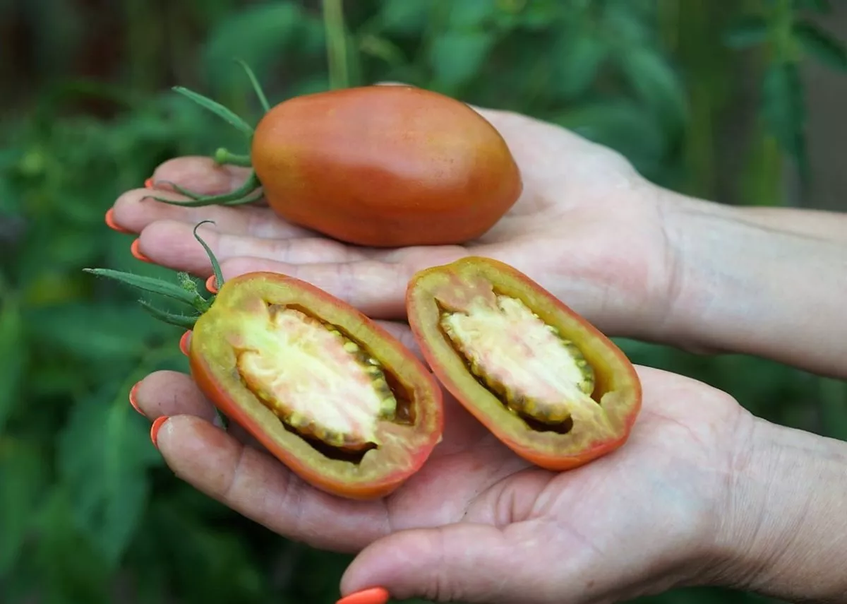 Плотная, мясистая мякоть и прочная кожица открывают широкие возможности для переработки. В цельноплодном консервировании эти томаты сохраняют форму, не растрескиваются в рассоле и приобретают интересный, глубокий оттенок. Их размер как раз удобен для укладки в стандартные банки.