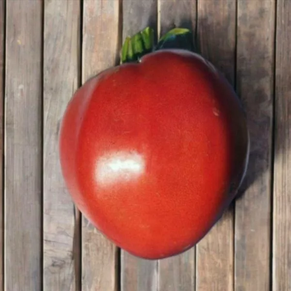 Главная отличительная черта этих томатов — их узнаваемая сердцевидная форма, часто с четко выраженным заостренным кончиком («носиком»). В биологической спелости они приобретают насыщенный красный цвет с уникальным розовым муаром — благородным матово-бархатистым отливом, который отличает их от просто глянцевых красных сортов.