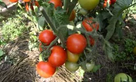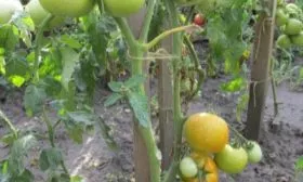 Каждый из оставленных стеблей необходимо индивидуально подвязать к опоре или шпалере. Стебли, особенно под тяжестью наливающихся плодов массой 130-150 граммов, могут надламываться в месте крепления кисти.