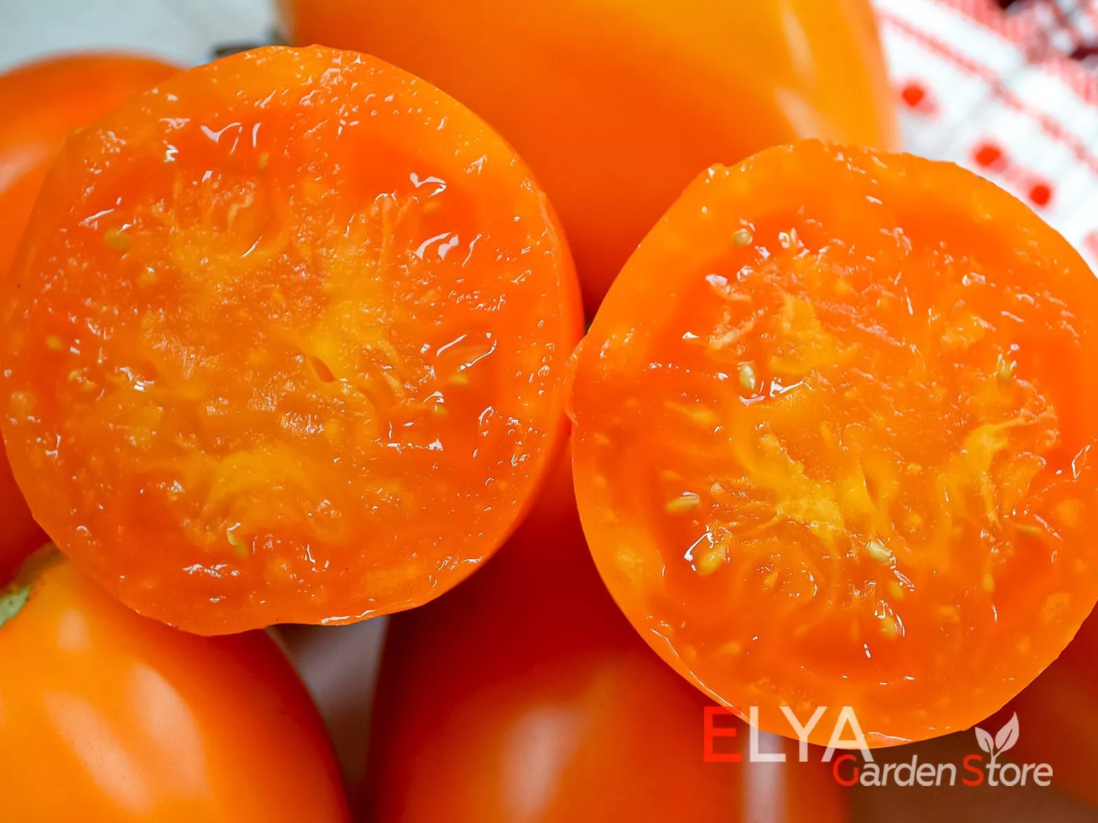 Внутри плод многокамерный, с умеренным количеством семян. Мякоть мясистая, плотная, но сочная, того же желто-оранжевого цвета, что и кожица, без зеленого или белого пятна у плодоножки. Сочетание плотной мякоти и прочной, хоть и нежной кожицы обеспечивает хорошую транспортабельность и устойчивость плодов к растрескиванию при соблюдении режима полива.
