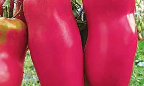 | Цвет и форма | Розовый, цилиндрическая, слаборебристая | Насыщенный розовый цвет свидетельствует о высоком содержании ликопина. Слабая ребристость упрощает мойку и обработку плодов по сравнению с сильноребристыми сортами. |