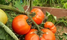 Высокорослый куст с тяжелыми кистями, каждая из которых может нести несколько плодов массой от 124 граммов и более, физически не может стоять без опоры. Подвязку начинают практически сразу после высадки рассады.